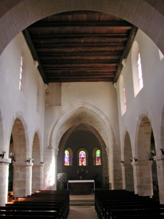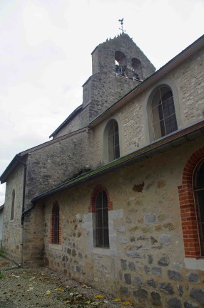 L'église actuelle est un édifice dont certains éléments appartiennent au XIIIème siècle. Elle comprend une nef flanquée de bas-côtés, précédée d'un narthex, un transept et un chœur voûte en cul de four. Le clocher s'élève à la croisée du transept vraisemblablement conçu à l'origine pour comporter une tour couverte en bâtière, il n'est plus constitué que par un mur à cloches (rare dans la région) qui surmonte le pignon séparatif entre la nef et le transept.
