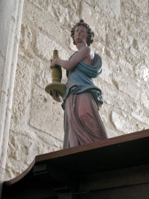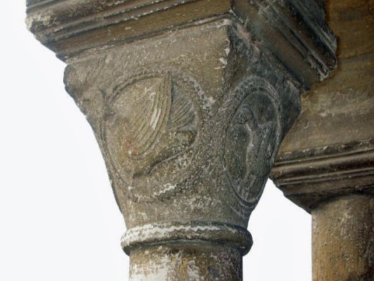 Elle possède l'une des plus anciennes galeries-porches de la région, avec des chapiteaux datant de 1140 et représentant des rubans entrelacés, des palmettes, des bovins, des chouettes et des figures humaines. L'ouverture centrale est postérieure, l'entrée se faisant avant par les ouvertures latérales.