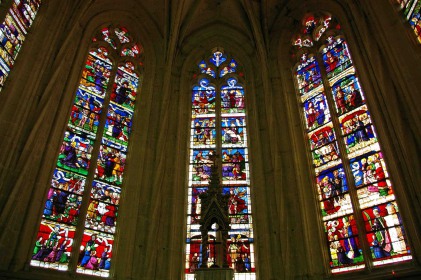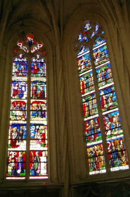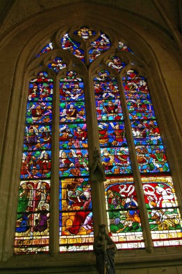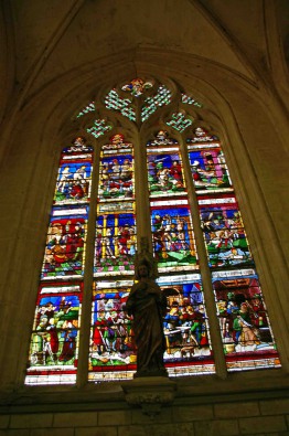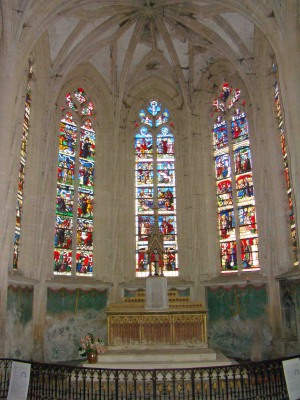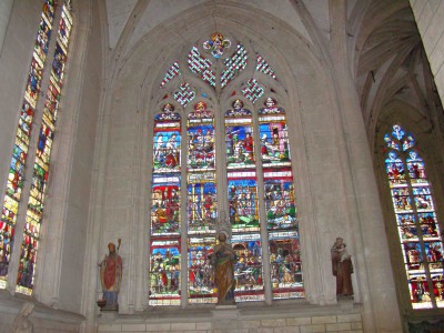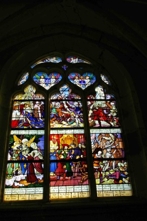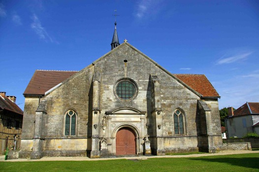De l'église du XII ème siècle de style art roman ne subsistent que la tour-clocher située à la croisée du transept et l'un des deux vaisseaux du transept. Le bâtiment autour a été construit dans le style gothique flamboyant dans les années 1510. Le style de la première Renaissance apparaît près de la façade. Son portail porte la date de 1562. Les croisées des voûtes sont datées de 1635, 1669 et 1741.