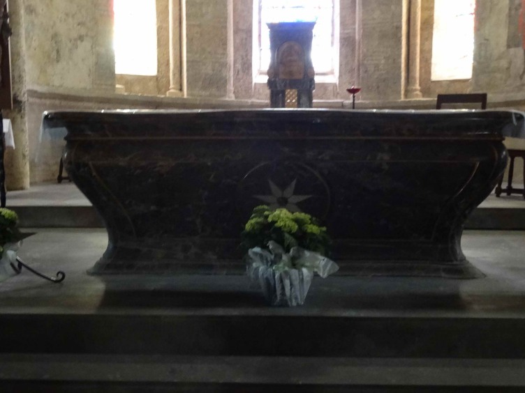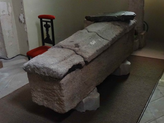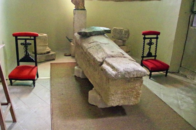 En 1974, lors de fouilles dans le chœur, un sarcophage en grès de forme trapézoïdale, caractéristique de l'époque mérovingienne, a été mis au jour. Sa cuve monobloc était vide, et son couvercle brisé en quatre. Une plaque en marbre brisée a également été retrouvée, datant elle du XVIIIe siècle et de même facture que l'autel avec l'inscription “SAINT MAGERAND“.