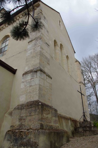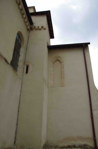 L'église est de style roman. Sa nef est du XII ème siècle et son chœur est du XIII ème siècle. Son transept est plus tardif (XV ème siècle). Elle se situe sur une hauteur à l'écart du village qui a été reconstruit plus bas après un incendie, elle est toujours entourée de son cimetière. Son aspect actuel est dû à la rénovation de 2005-2006 .