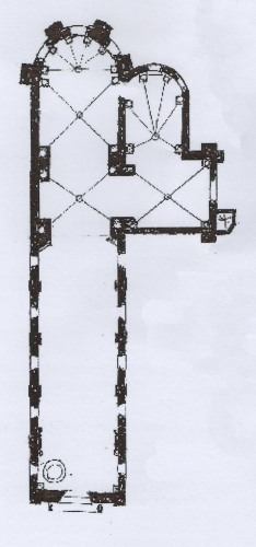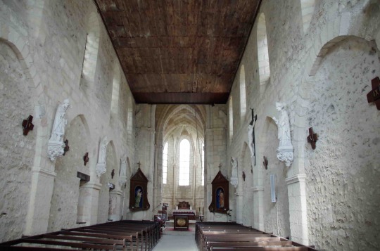 L'édifice, du XII ème et XIII ème siècle présente un plan en croix latine dont la croisée est surmontée d'un clocher. Il a été amputé de son bras nord et de ses deux bas-côtés. Le choeur se compose d'une travée droite terminée par une abside à cinq pans. Des deux bras du transept, édifiés au 13e siècle, ne subsiste que le sud qui s'ouvre sur une chapelle orientée, voûtée d'ogives.