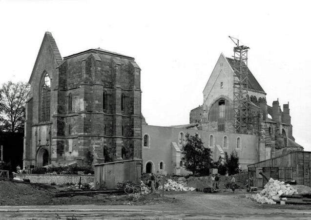 L'édifice fut bombardé et incendié le 14 juin 1940 ce qui entraîna un grand chantier de restauration dès 1941 et la reconstruction quasi-totale de la nef sous la direction de Jacques Laurent, architecte en chef des Monuments Historiques. Cette phase de travaux s'acheva au milieu des années 1950 mais la flèche de la tour ne fut posée qu'en 1982 en suivant les plans de Jean-Baptiste Bouchardon qui l'avait construite au 18ème siècle.