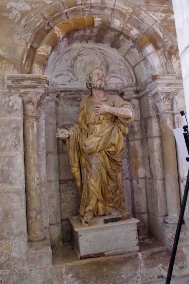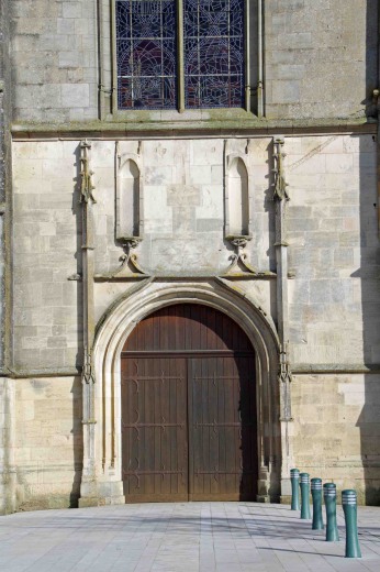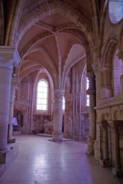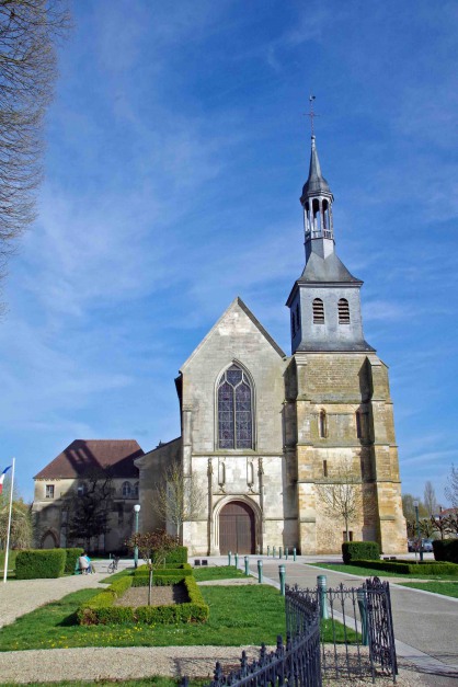 Au 14ème siècle, l'abbé Ferry éleva la chapelle des fonts au nord du choeur. Au début du 16e siècle, l'abbé commendataire François de Dinteville modifia la partie antérieure de l'église (reconstruction de la façade et destruction de sa tour septentrionale) et remplaça les charpentes des tribunes par des voûtes.