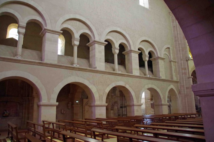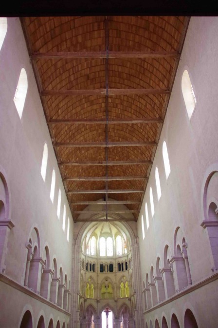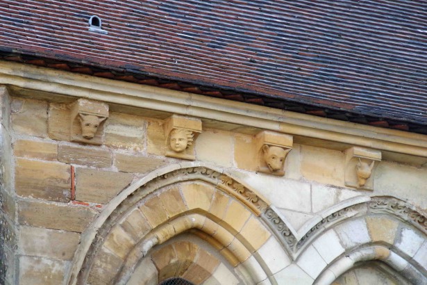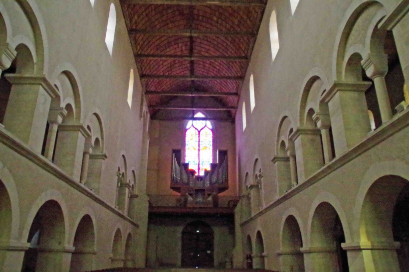 Au cours de la 1ère moitié du 11ème siècle, on dota la nef de tribunes et d'un massif antérieur à tours et à la fin 12e on édifia le choeur et la tour de façade qui furent probablement achevés aux alentours de 1200.