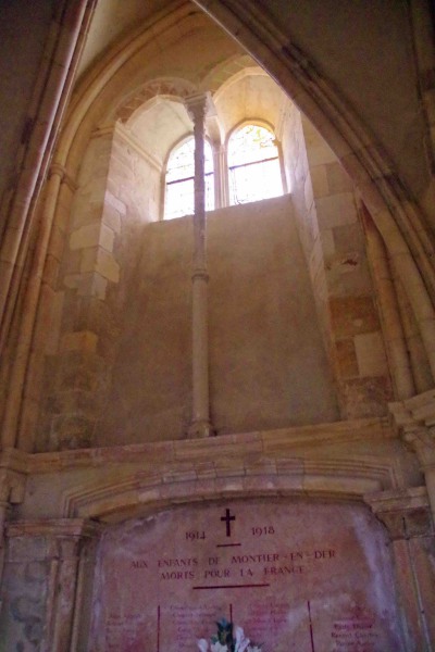 L'actuelle église paroissiale Saint-Rémy est l'ancienne abbatiale de l'abbaye bénédictine fondée en 673 par saint Berchaire sur des terres données par le roi Childéric II. A la Révolution, l'ancienne église paroissiale de Montier-en-Der, du vocable de Saint-Rémy, fut détruite. Les paroissiens retrouvèrent un lieu de culte dans l'abbatiale inoccupée qui était alors dédiée à Notre-Dame et où ils continuèrent à célébrer leur ancien patron, saint Rémy.